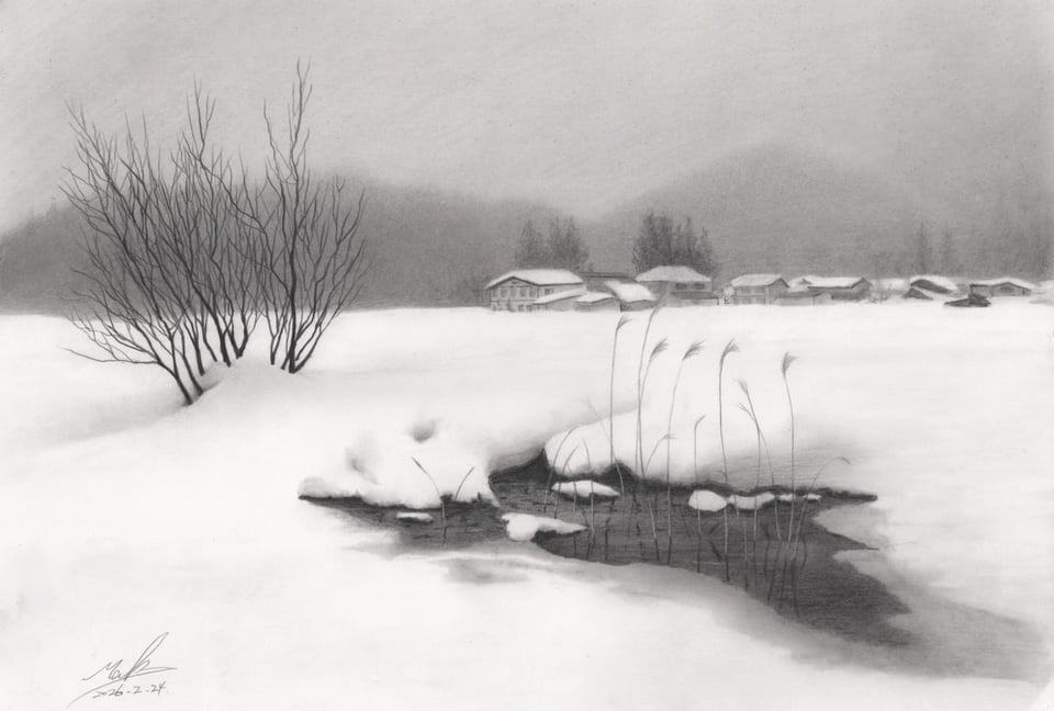 白馬に行った時、自分で撮った写真から描いたオリジナルの鉛筆画です。